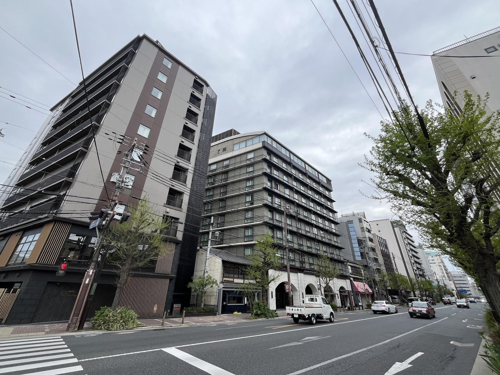 右側に建つのは「アーバントラベライフ京都清水五条別邸」(2016年竣工)