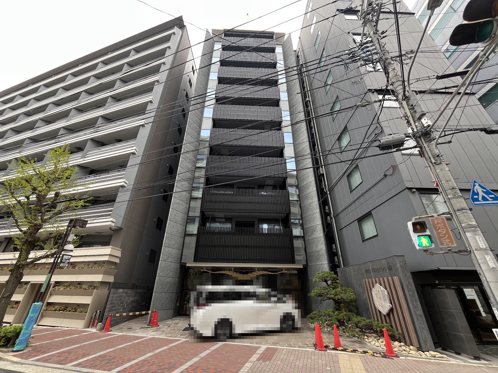 「ブランズ京都河原町通」の向かいにはマンションが建ち並んでいる。最上階からの眺望は抜けるのだろうか?