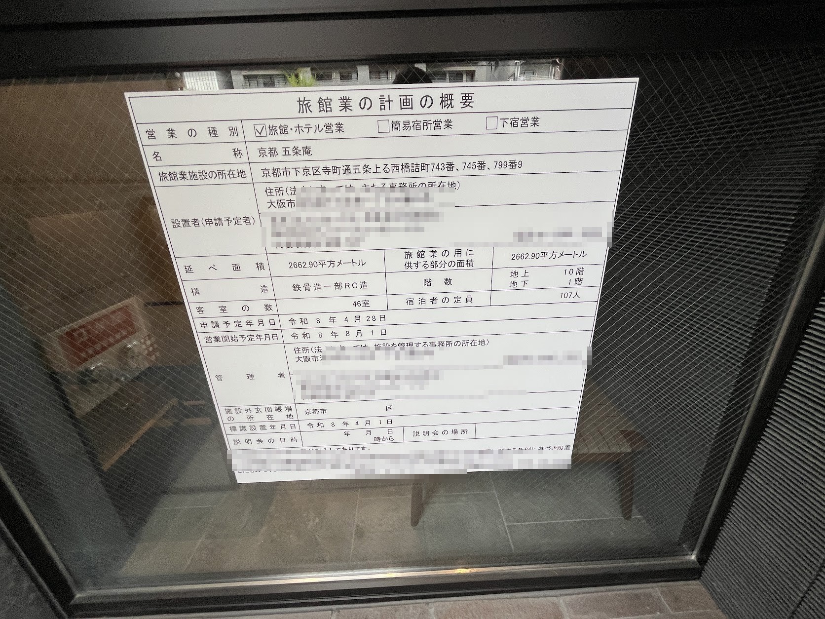 「フォションホテル京都」南側の「肉の長崎屋」が休業となっている