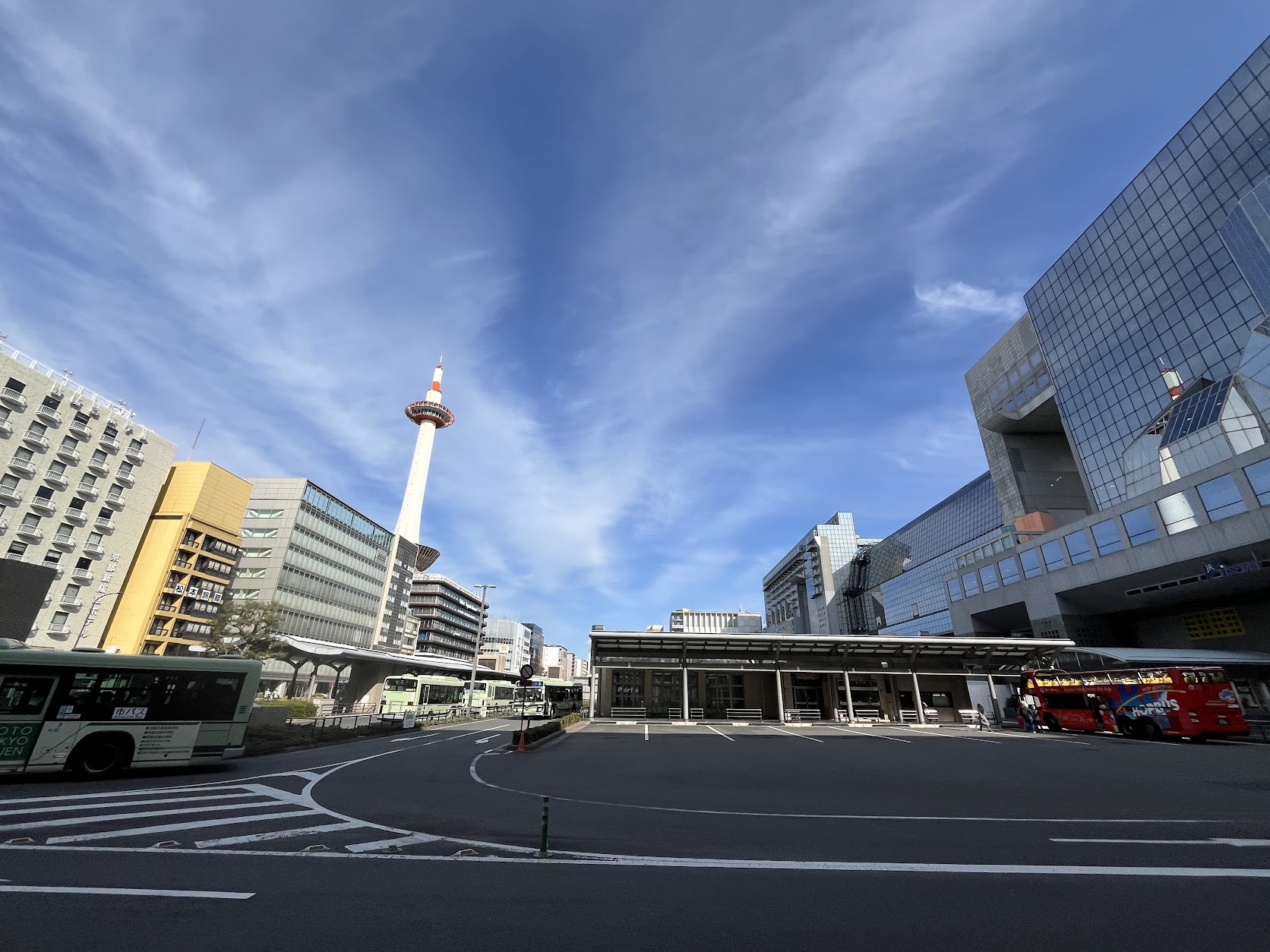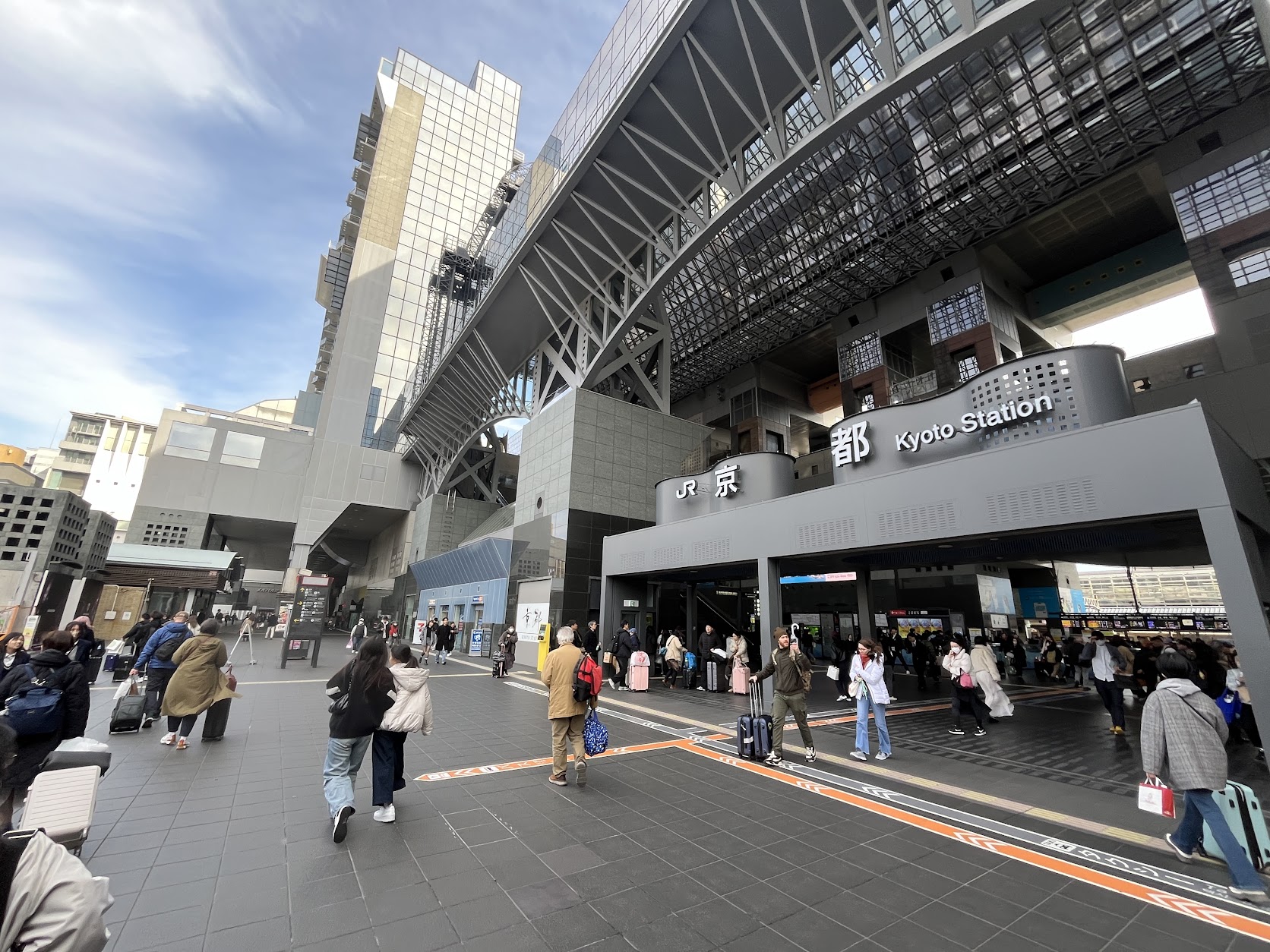 京都駅ビルの前に建つ