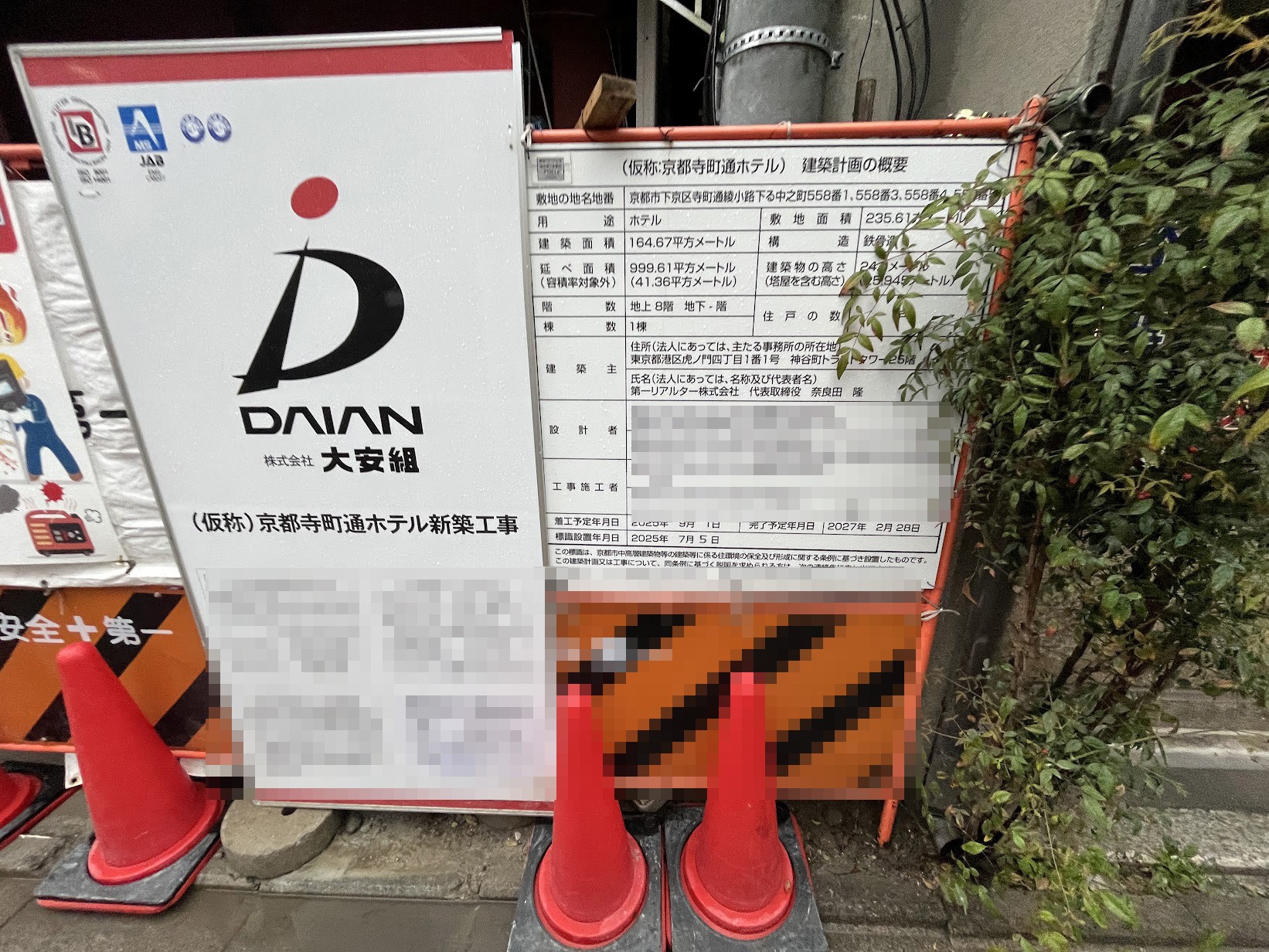 韓国焼肉の隣の建設現場は「第一リアルター」によるホテル計画です