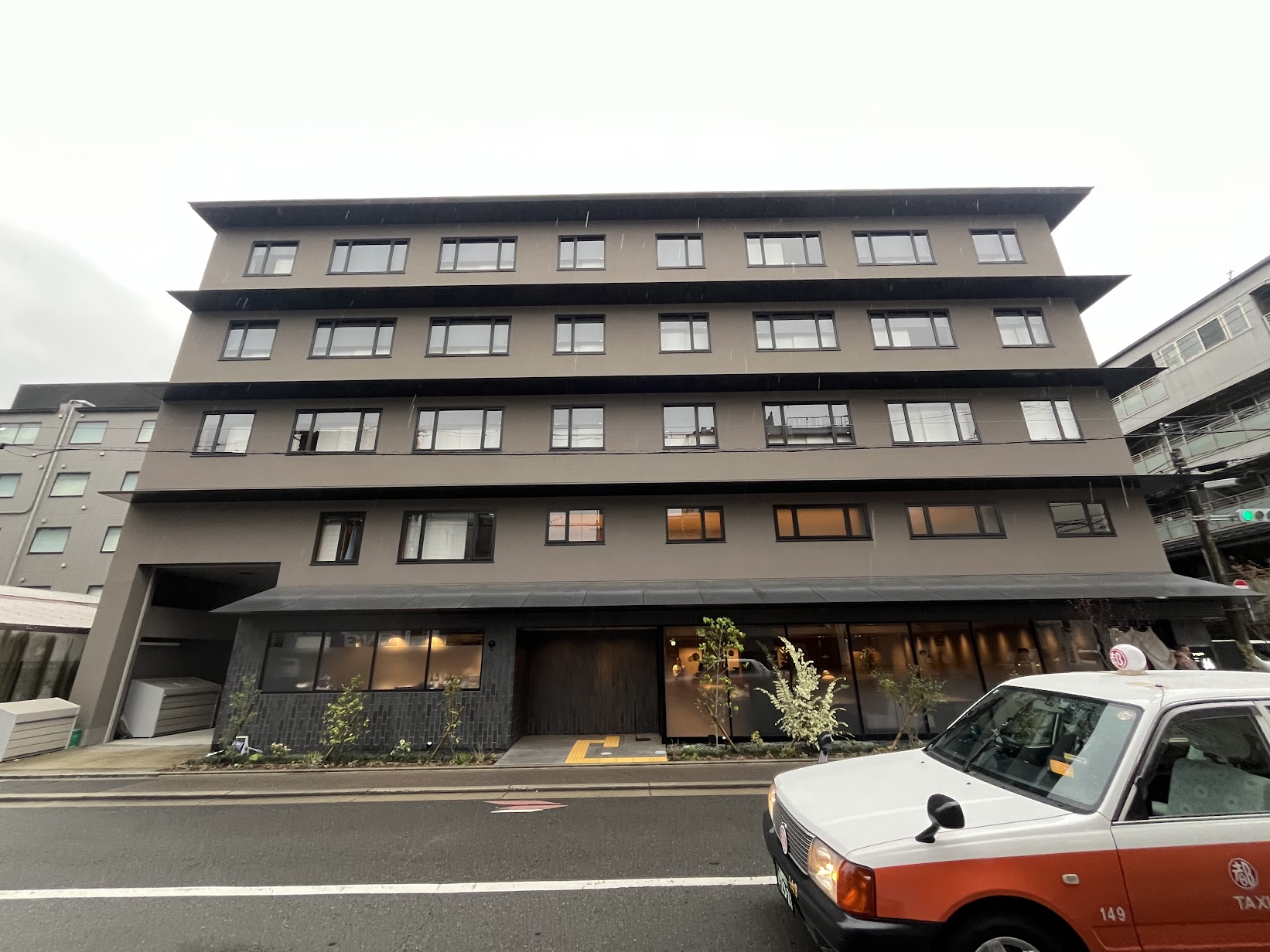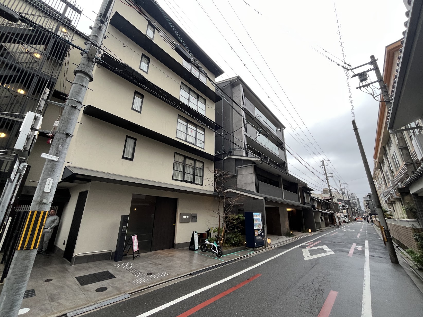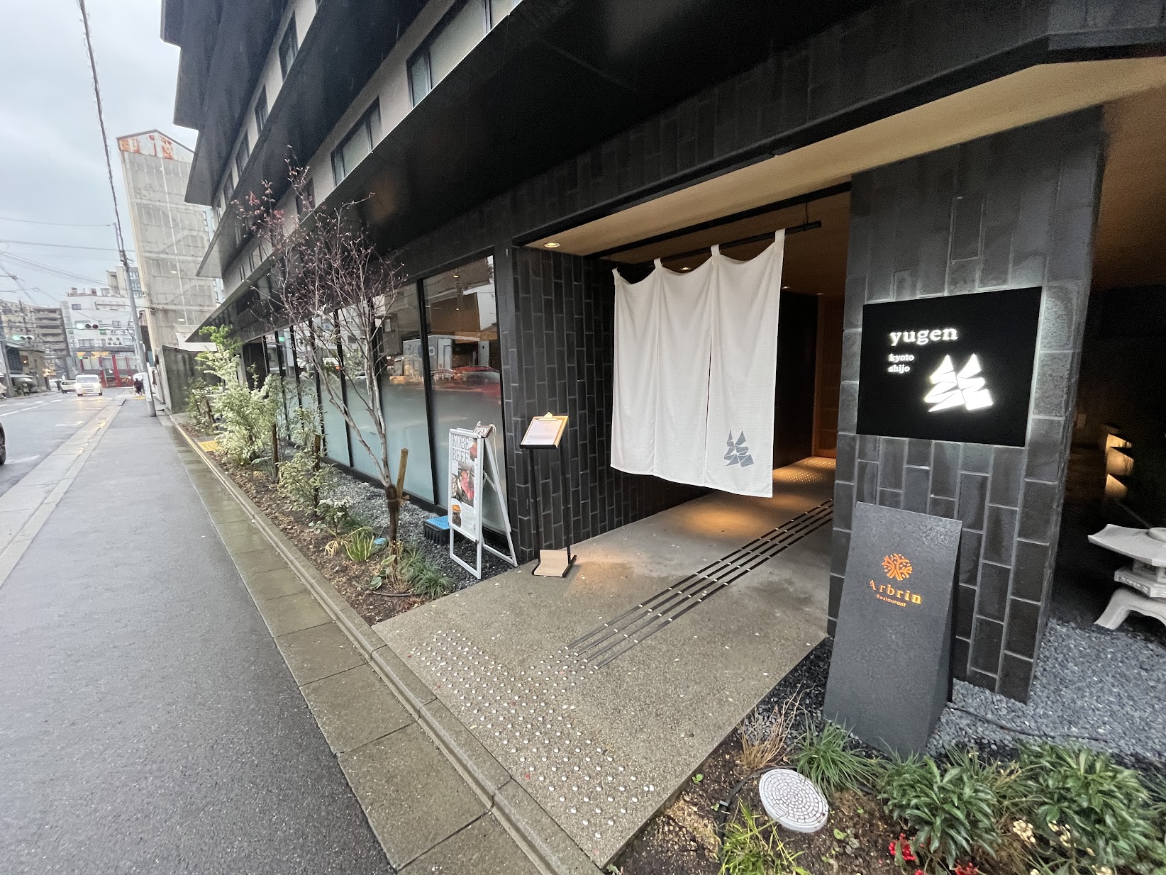 高辻通にコロナ禍で完成したものの開業しないまま長らく放置されていたホテルがオープンしていました。「yugen kyoto shijo」は昨年2025年9月開業しました。